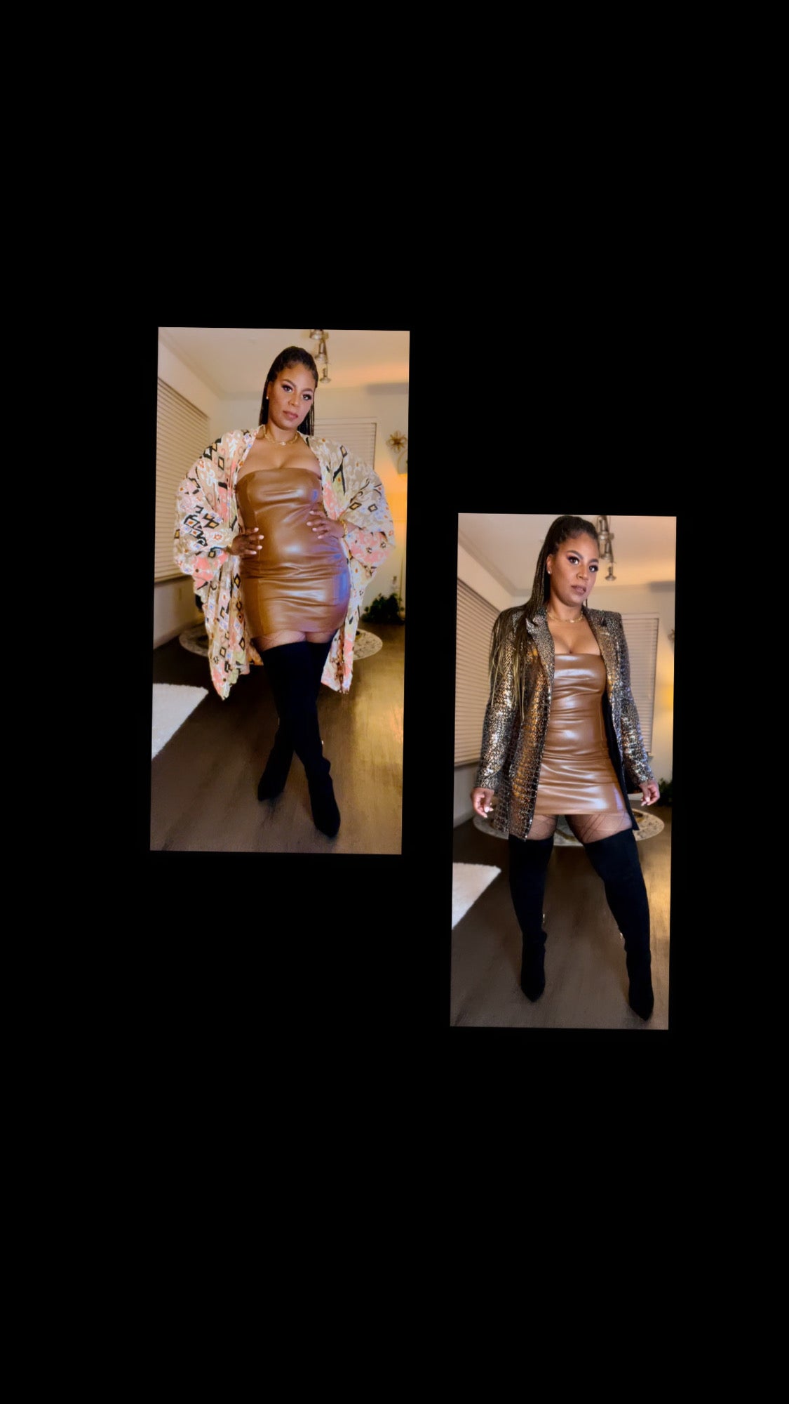 Strapless vegan leather mini dress, back zipper closure, dress has lots of stretch